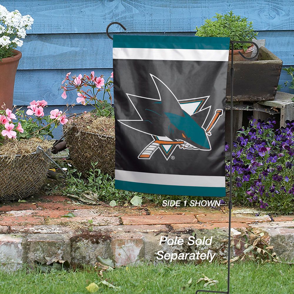 Cheer on your San Jose Sharks with this NHL team garden flag. Made with polyester fabric, this printed garden flag is double sided with a unique design on each side. Fits any standard size garden flag pole or bracket. Officially Licensed. Measures 12.5"W x 18"T.