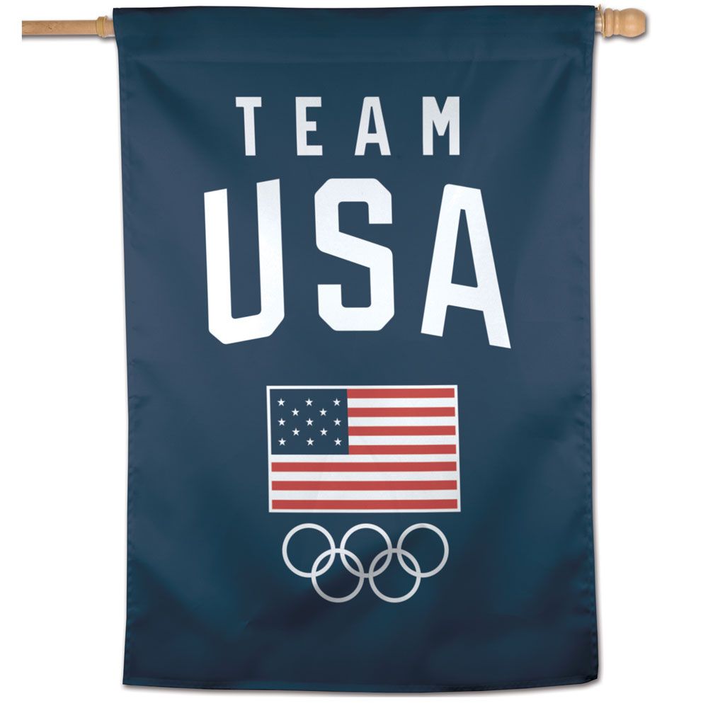 Celebrate the spirit of the Olympics with this 28"x40" Olympic Team USA house flag. Made from polyester material, this printed team flag is single-reverse so it reads correctly on the front and reversed on the back side. Finished with a sleeve and tab for easy attachment to your pole. Officially Licensed.