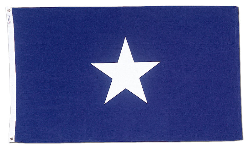 This historical 3'x5' Bonnie Blue flag is digitally printed on our 200 denier nylon fabric. The flag is finished with a strong white polyester canvas heading and two brass grommets for easy attachment to your flagpole. Made in the USA.