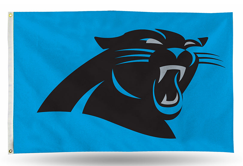 Cheer on your Carolina Panthers with this 3'x5' team flag by RICO. This sports flag features the Panthers logo in black on a blue background. Finished with a sturdy polyester header and two brass grommets for easy attachment to your flagpole. Officially Licensed.