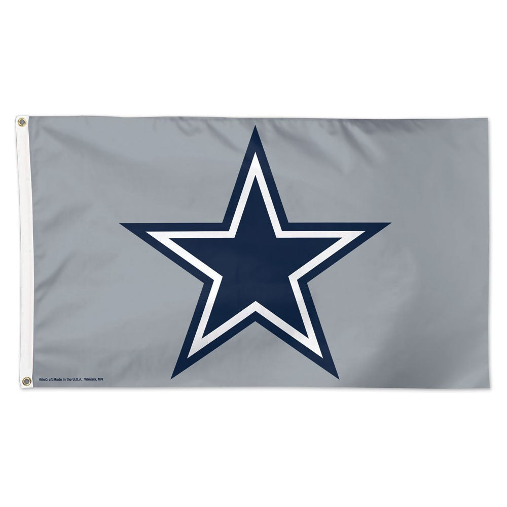 Cheer on your Dallas Cowboys with this 3'x5' team flag. This design features the famous Cowboys logo on a grey background. Made from polyester fabric, this durable outdoor flag is printed on both sides so the design is readable from either direction. Finished with a strong polyester header and two brass grommets for easy attachment to your flagpole. Any time is a good time to fly your Cowboys flag. Officially Licensed.