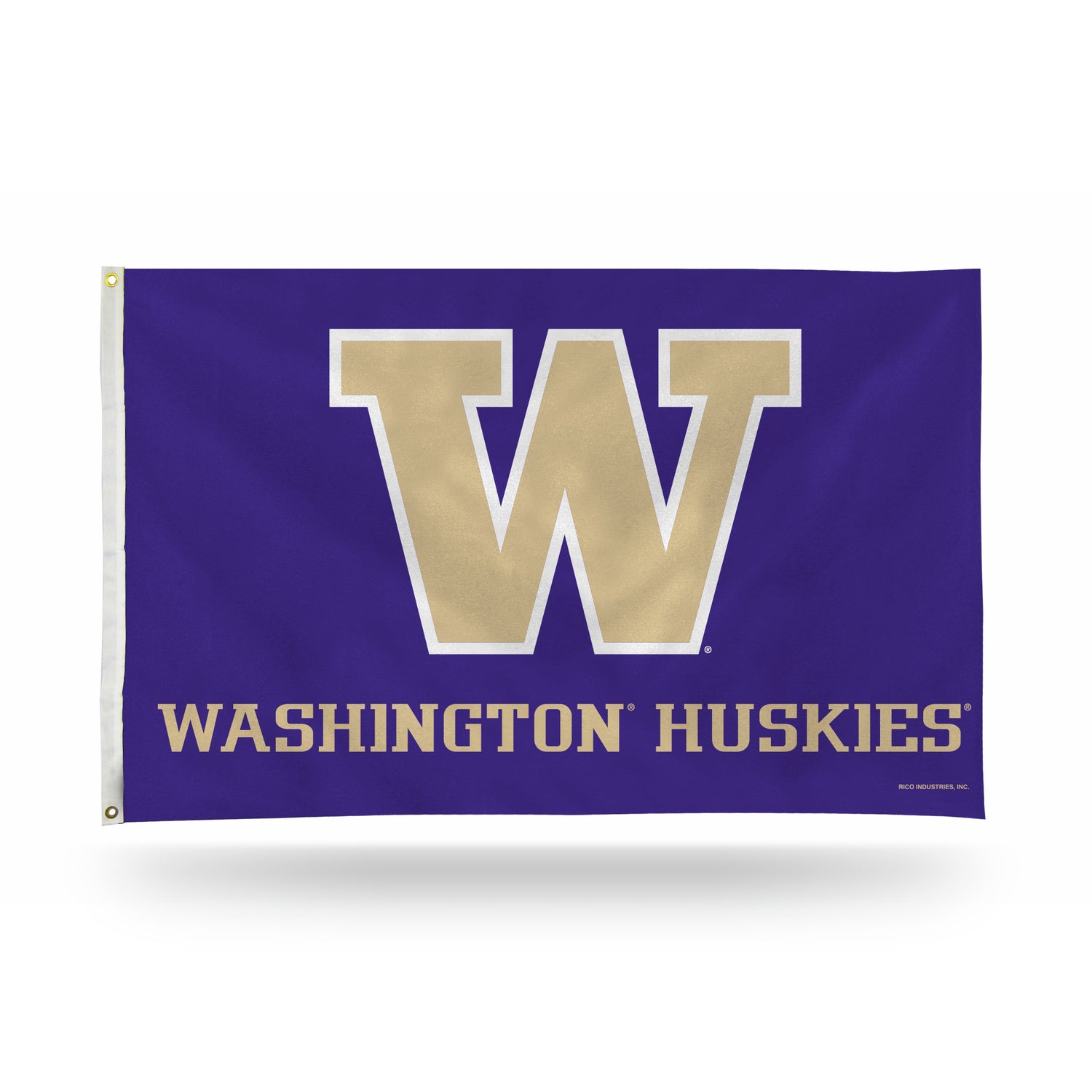 Cheer on your University of Washington Huskies with this 3'x5' team flag by RICO. This Husky sports flag features a bold University of Washington "W" logo on a purple background. Finished with a sturdy polyester header and two brass grommets for easy attachment to your flagpole. Officially Licensed.