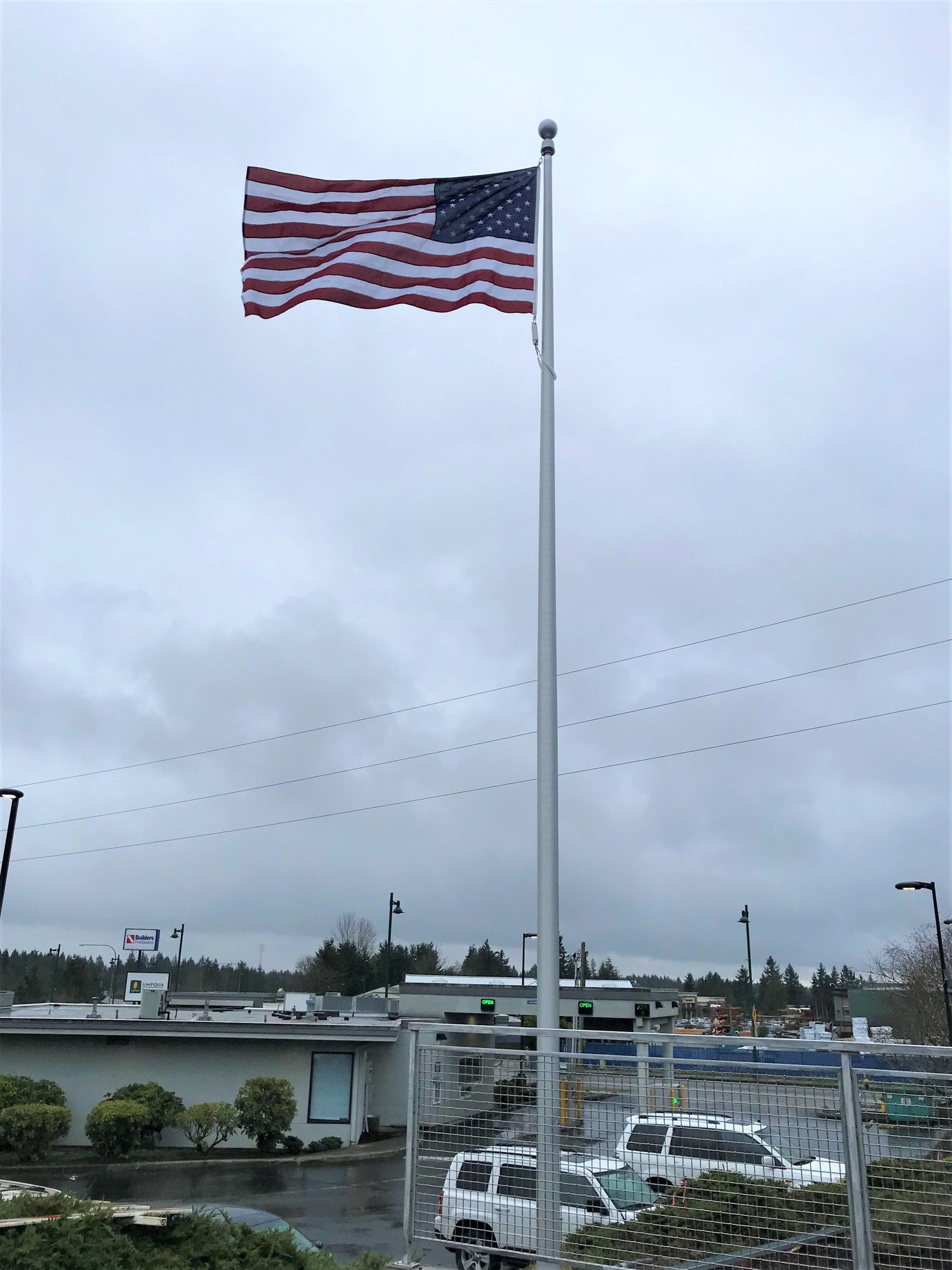 This 6'x10' Outdoor American Flag is made from heavy-duty Polyester material with fully sewn stripes and embroidered stars. Finished with a sturdy polyester header and brass grommets for easy attachment to most flagpoles. Heavier than nylon, this material also has an open weave which allows wind to pass through it, making it more appropriate for flagpoles in windier areas.