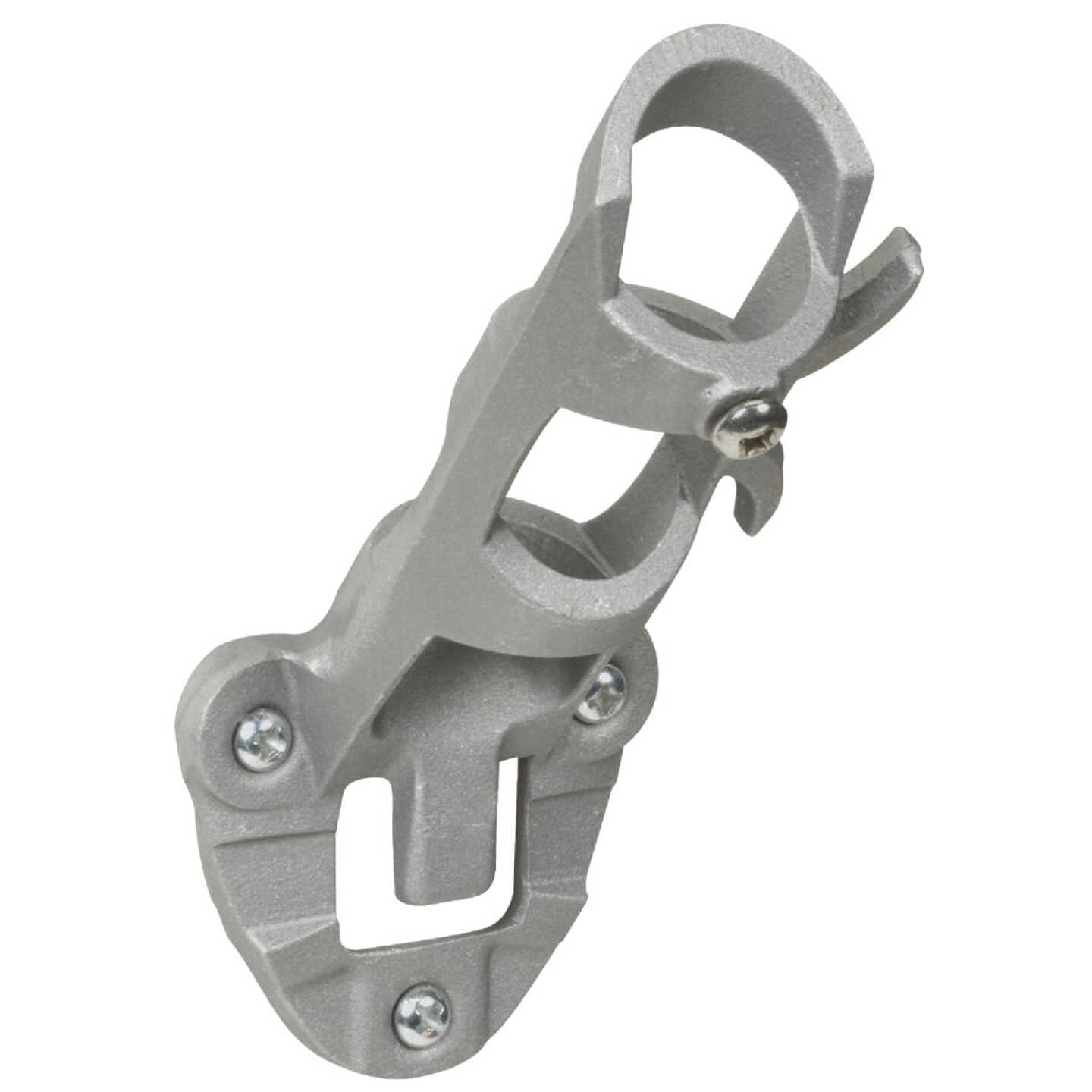 This economical cast aluminum bracket fits 1" outside diameter poles at a 45 degree angle. Made from cast aluminum, this raw finished bracket includes a cleat on the front, (3) mounting holes, & a slot for a stainless steel mounting band. Imported.