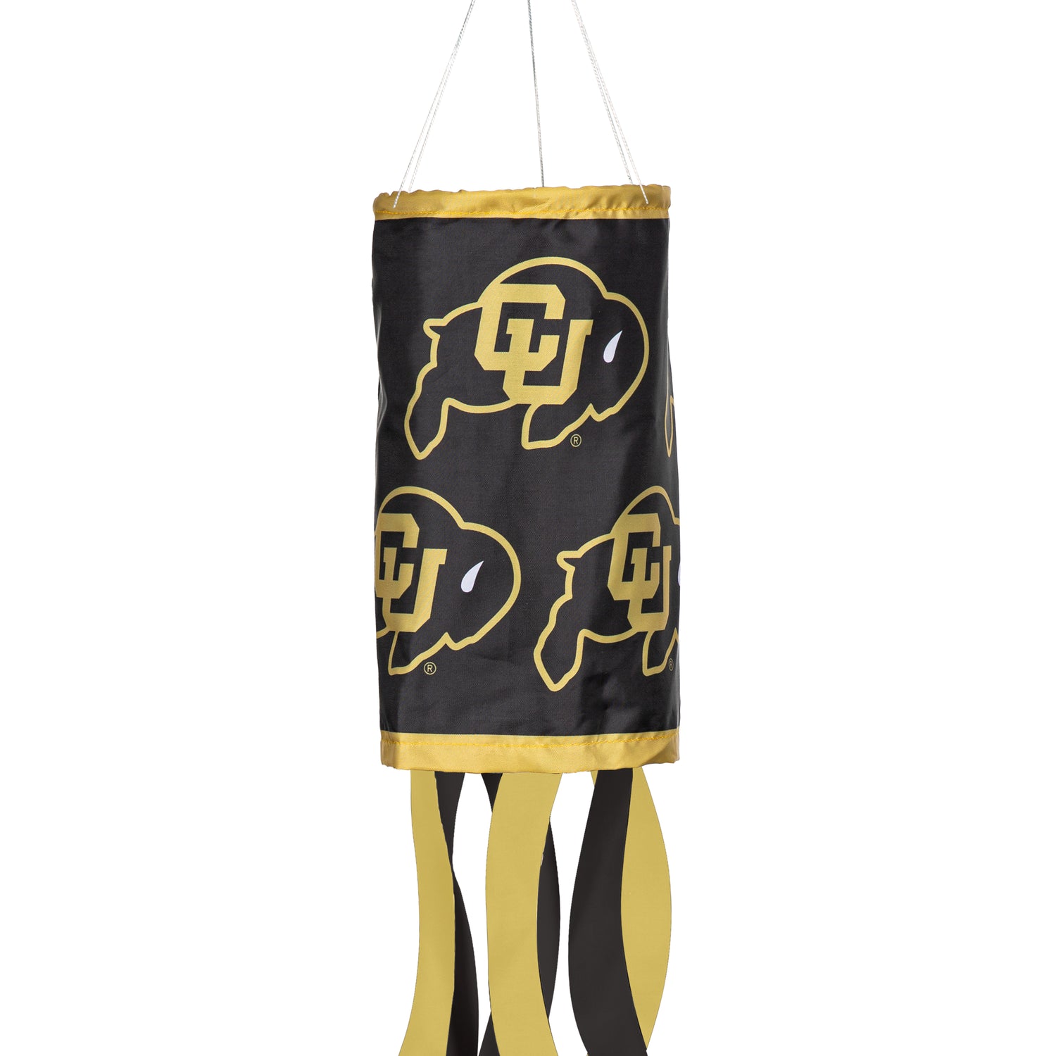 This brand new University of Colorado team windsock is a fun addition to your team décor. Made with polyester fabric, this windsock features streamer tails, includes a swivel for easy attachment. Measures 6"ODx40"L.